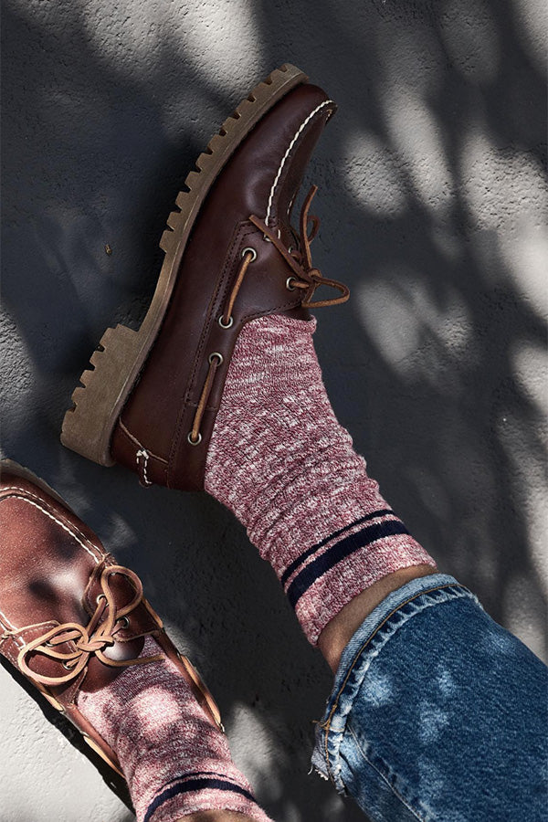 Disse robuste sko er skabt til at byde den koldere årstid velkommen og kombinerer den klassiske komfort fra en ikonisk sejlersko med holdbarheden fra en tyk gummisål, der giver vejrbestandighed og forbedrer stabilitet og greb. De er håndsyet af de fineste håndværkere med læder, der er specielt behandlet med en rig kombination af olier og voks for at give en naturlig poleret kvalitet. Deres navn, "Ranger", afspejler deres medfødte kærlighed til vildmarken og den store mangfoldighed af terræner, levesteder og landskaber, som naturen tilbyder.