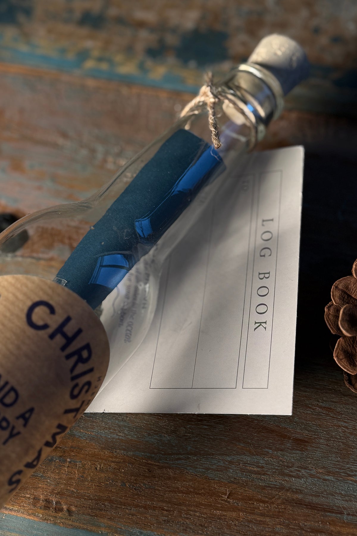 Vi sender dig (eller gavemodtageren) gavekortet i en klar glasflaske med korkprop, pakket ind i et paprør, så det når sikkert frem…