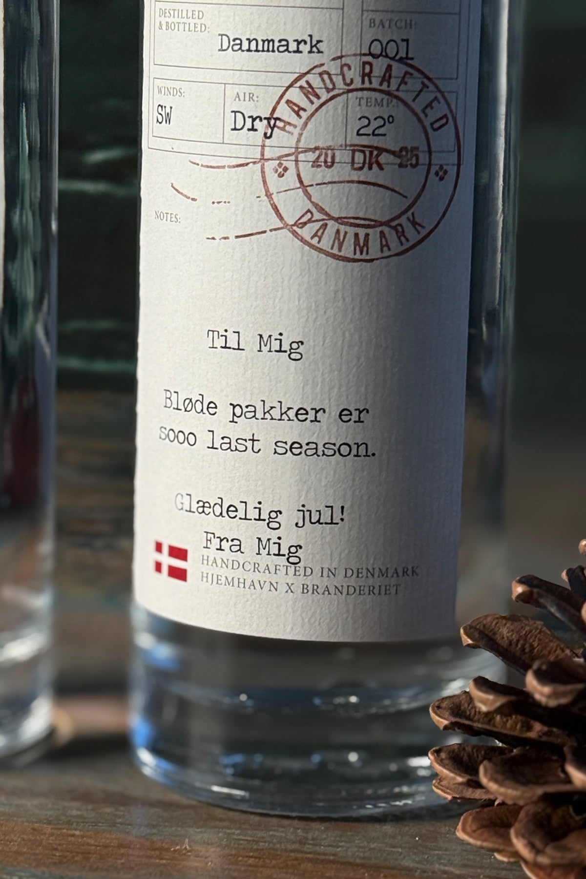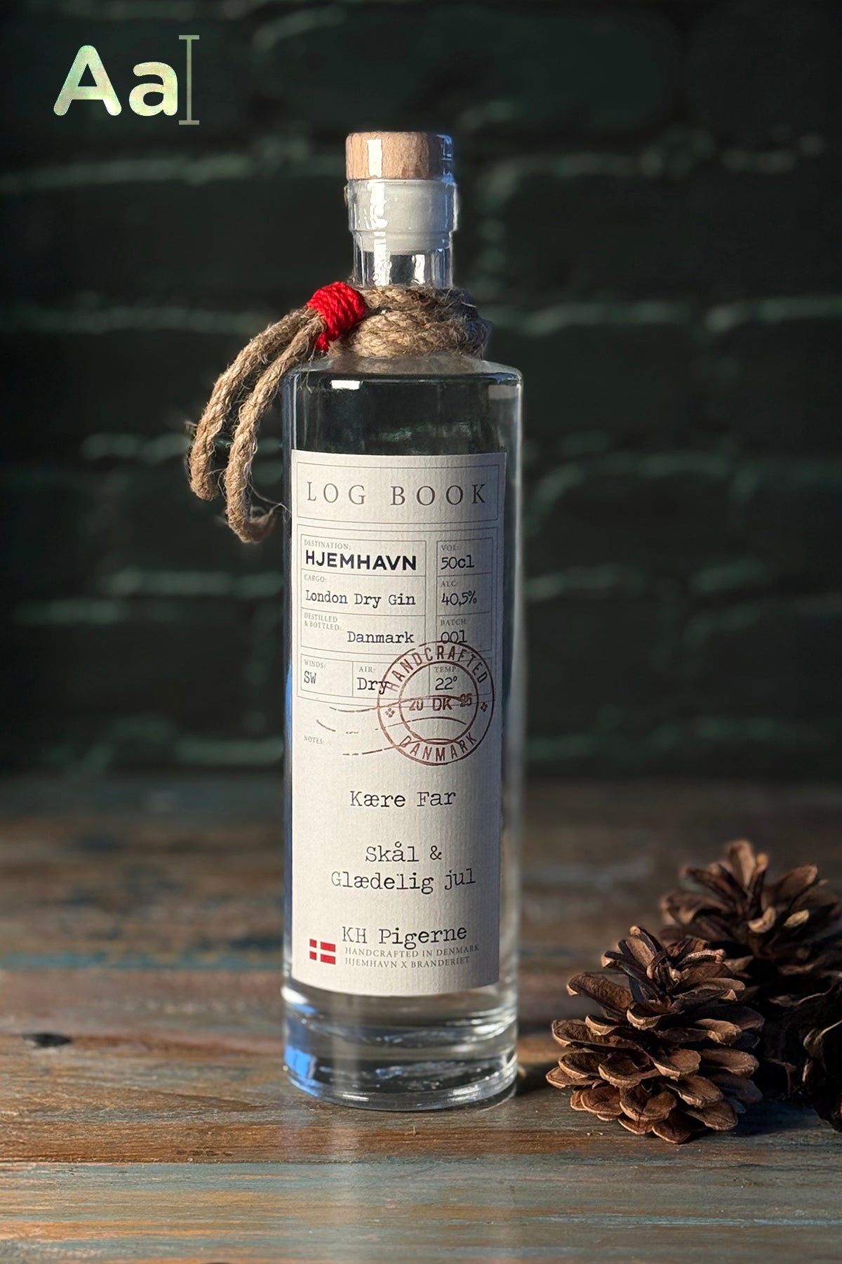 Send en personlig flaskepost/gave: Du kan nu få en hilsen eller lykønskning trykt på vores ginflaske. Skriv din tekst i feltet nedenfor og få den trykt på vores Logbook etiket. Du har 150 tegn/anslag. Ideel til jubilæer, fødselsdage og andre mærkedage. Leveres inkl. bomuldpose.