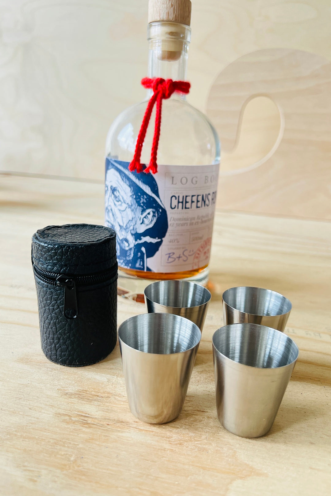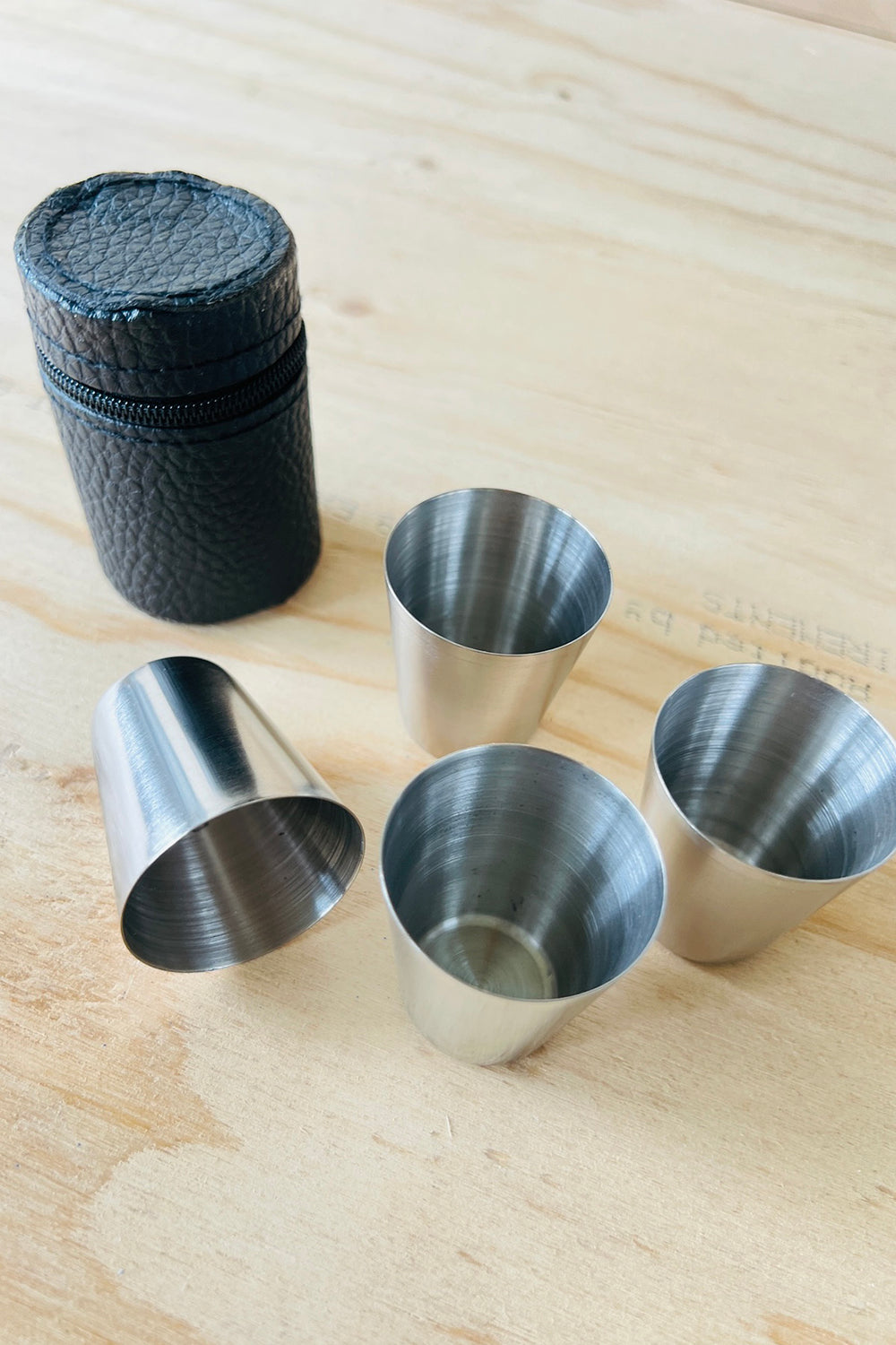 Fire snapseglas i etui