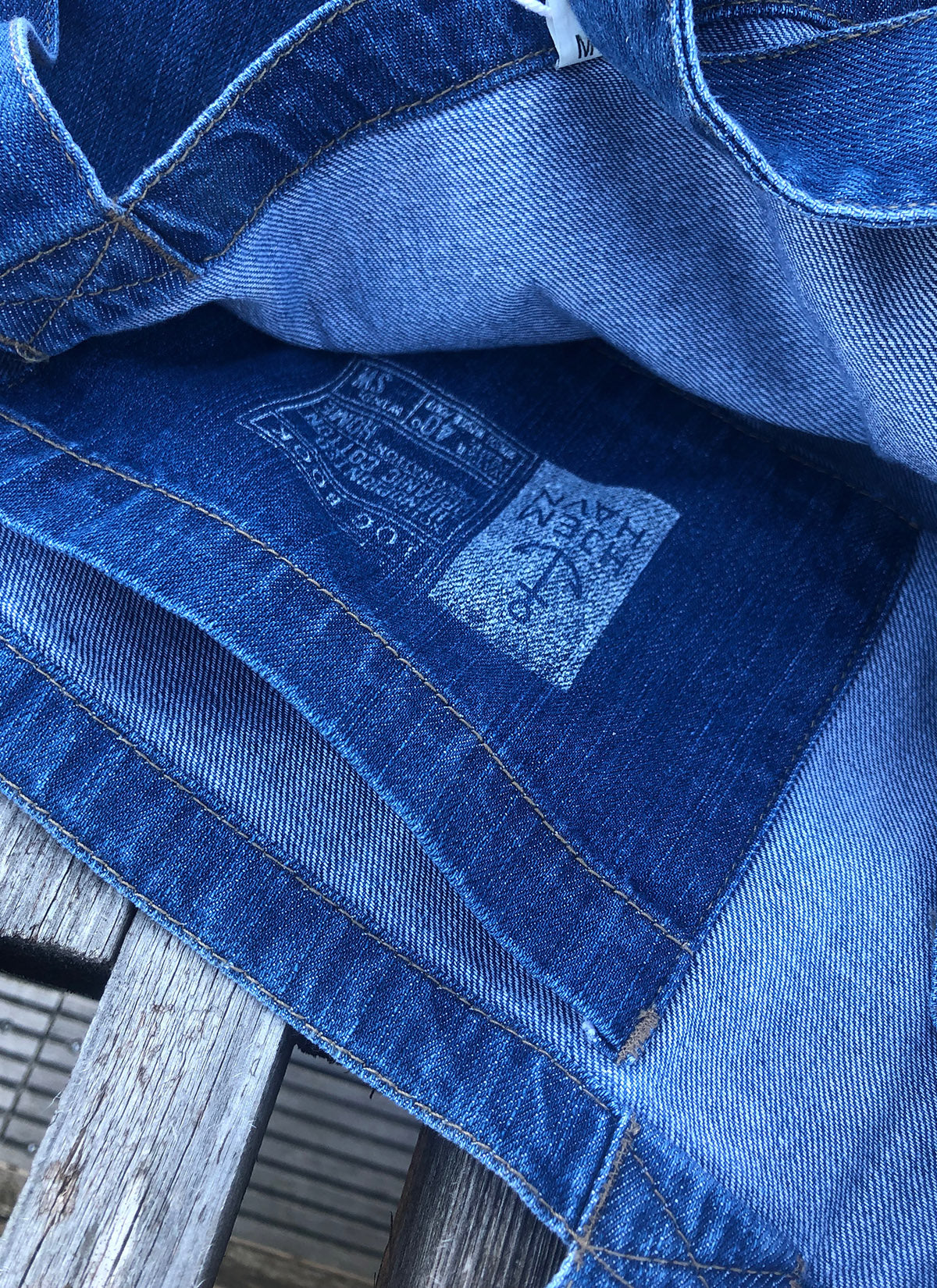 Farben:Denim mit weißem Aufdruck Größe: 50x46 cm mit langen Trägern (60x4 cm) Material:100 % Bio-Baumwolle Waschen:max. 40 gr. Lieferzeit: 3-6 Tage