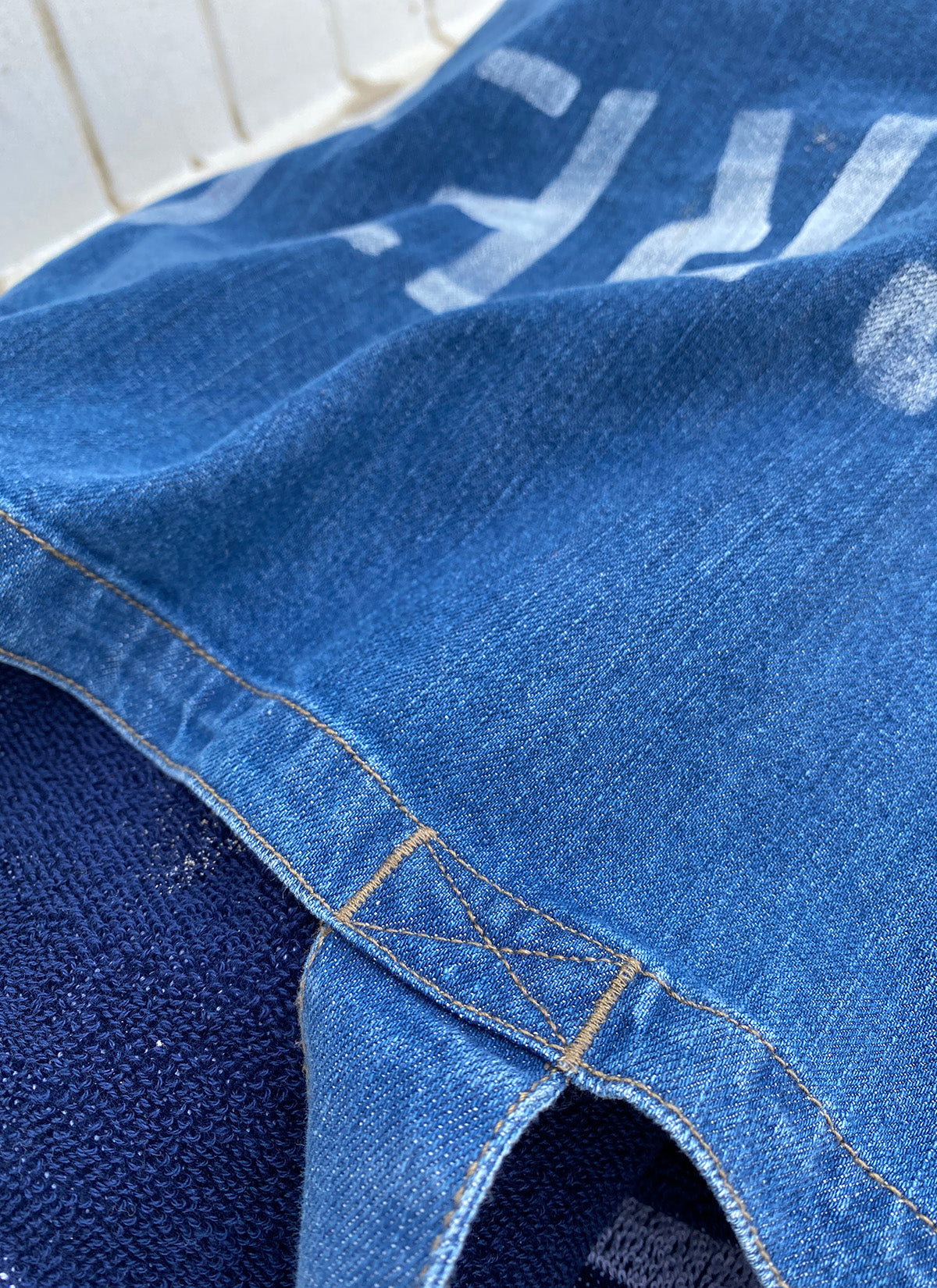 Gone to the beach! Große praktische Denim-Strandtasche für Ihre gesamte Strandausrüstung.