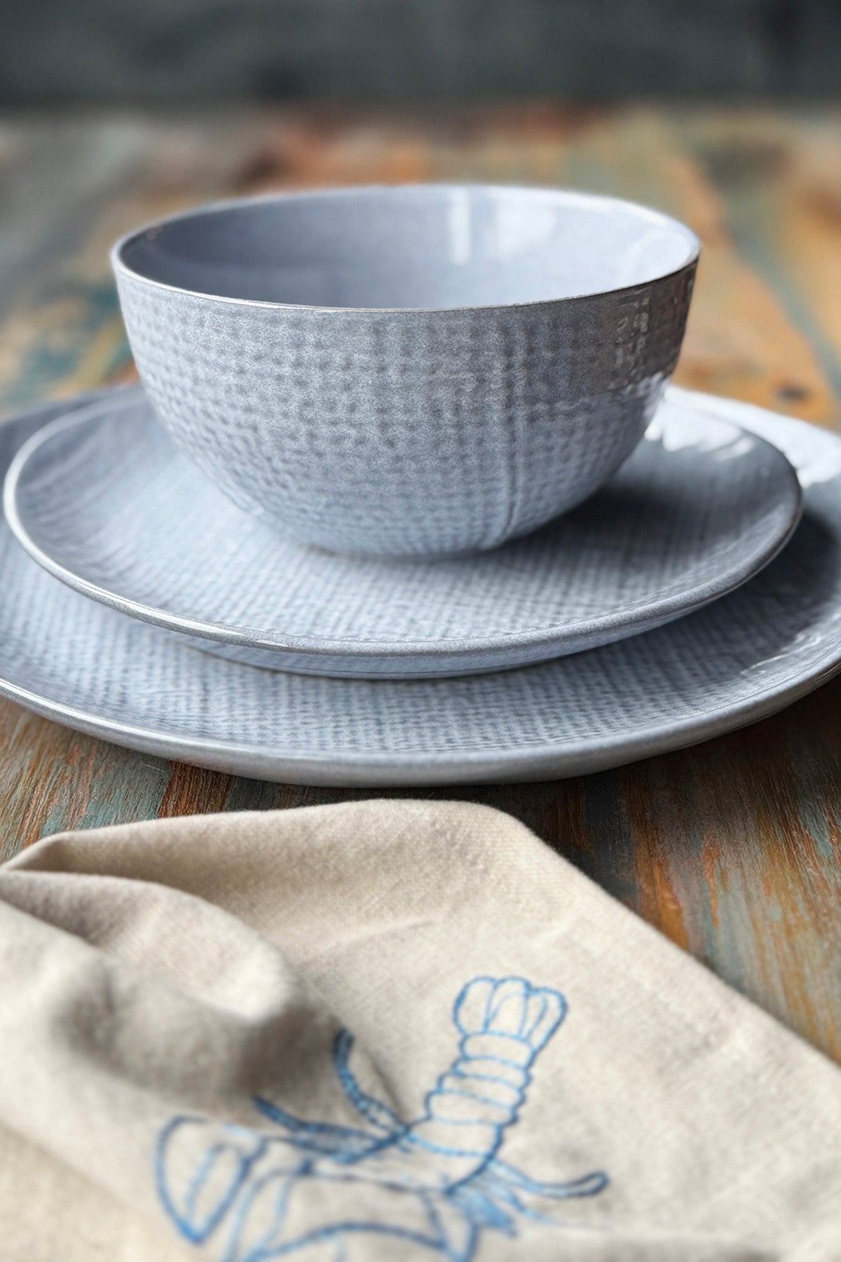 Beautiful gray bowl with an elegant pattern inspired by woven textile. Size: Ø15 x 7.5 cm Also available as a plate: SEE HERE