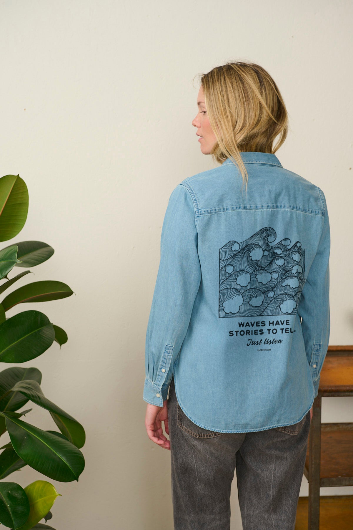 - Woven denim (235 Gr/M2) - 100% organic cotton - Ring-spun combed - Medium Fit (Women) - Photo: Elke is 174 cm / Small Also availablewithout back print