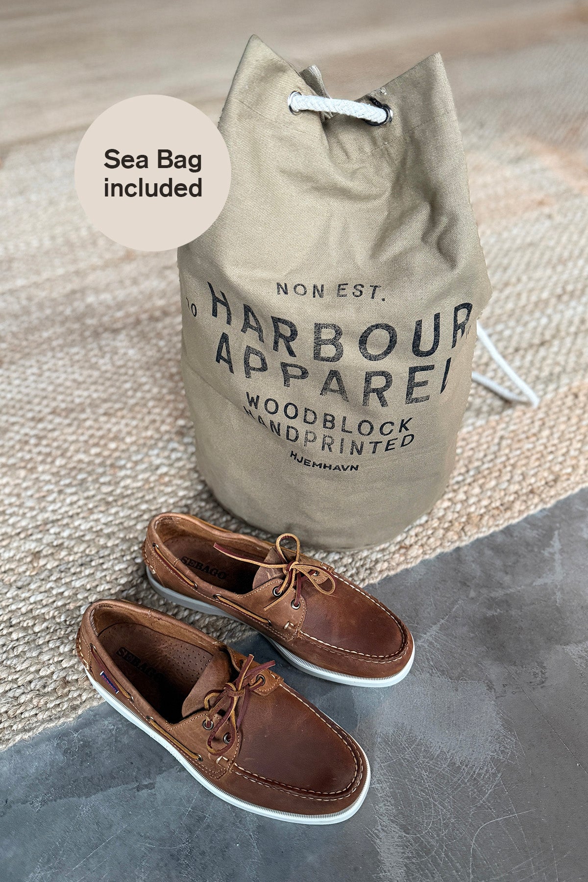 Model: SEBAGO Docksides Portland Crazy H Color: Brown Tan 912 Lining and upper: 100% leather Outsole: 100% rubber Extra: Comes with sea bag