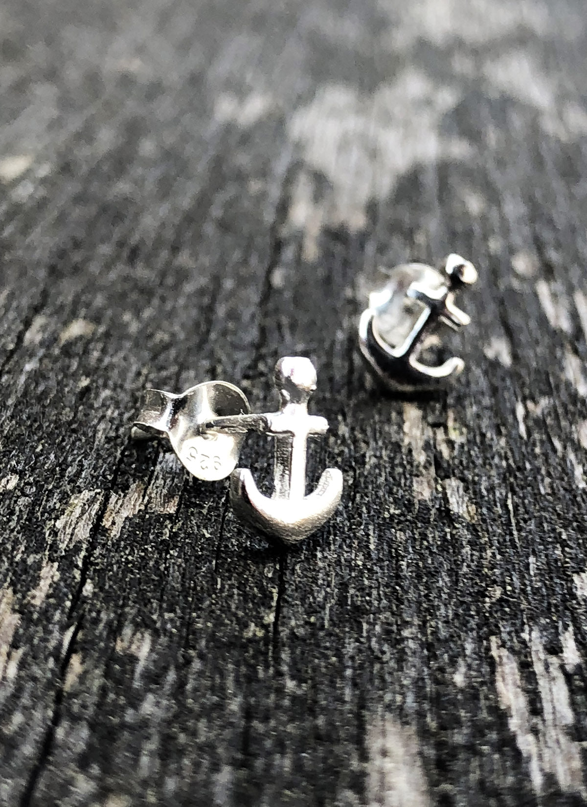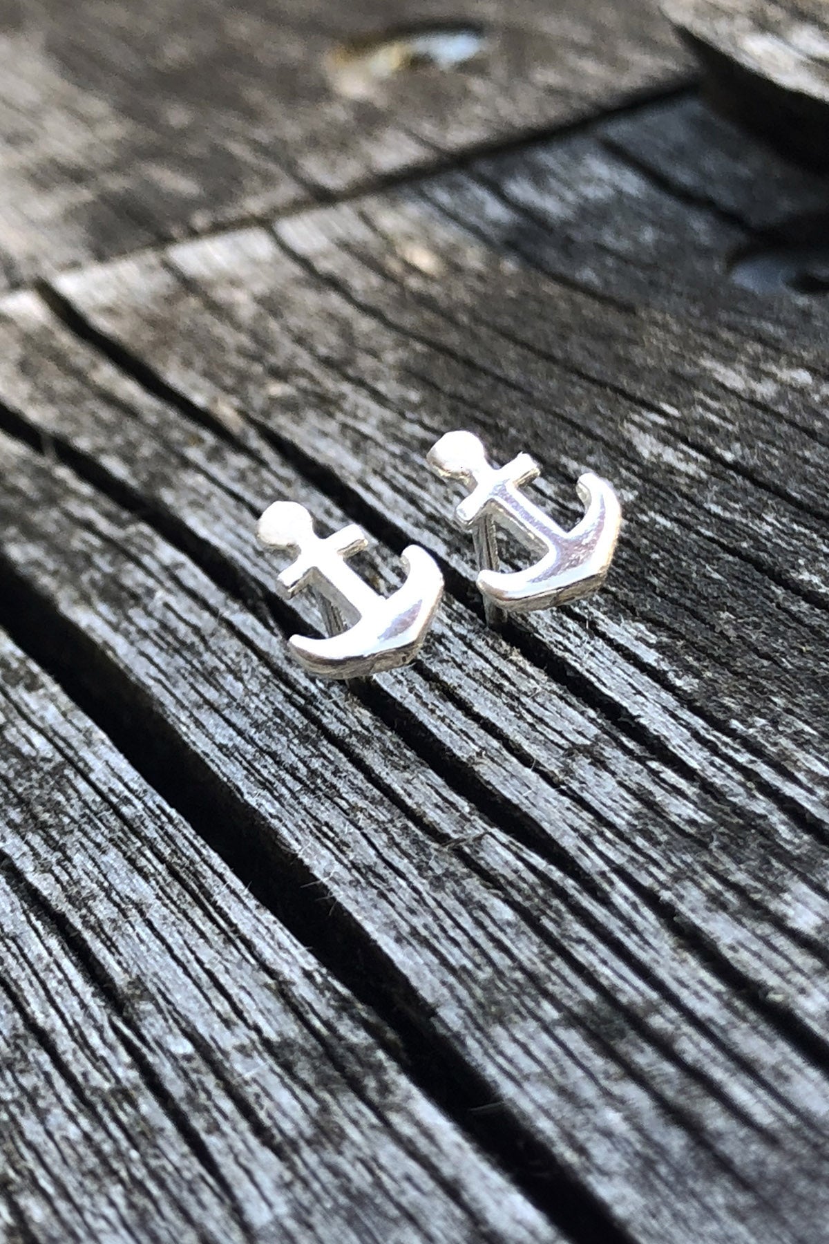 Small, fine anchors as ear studs.