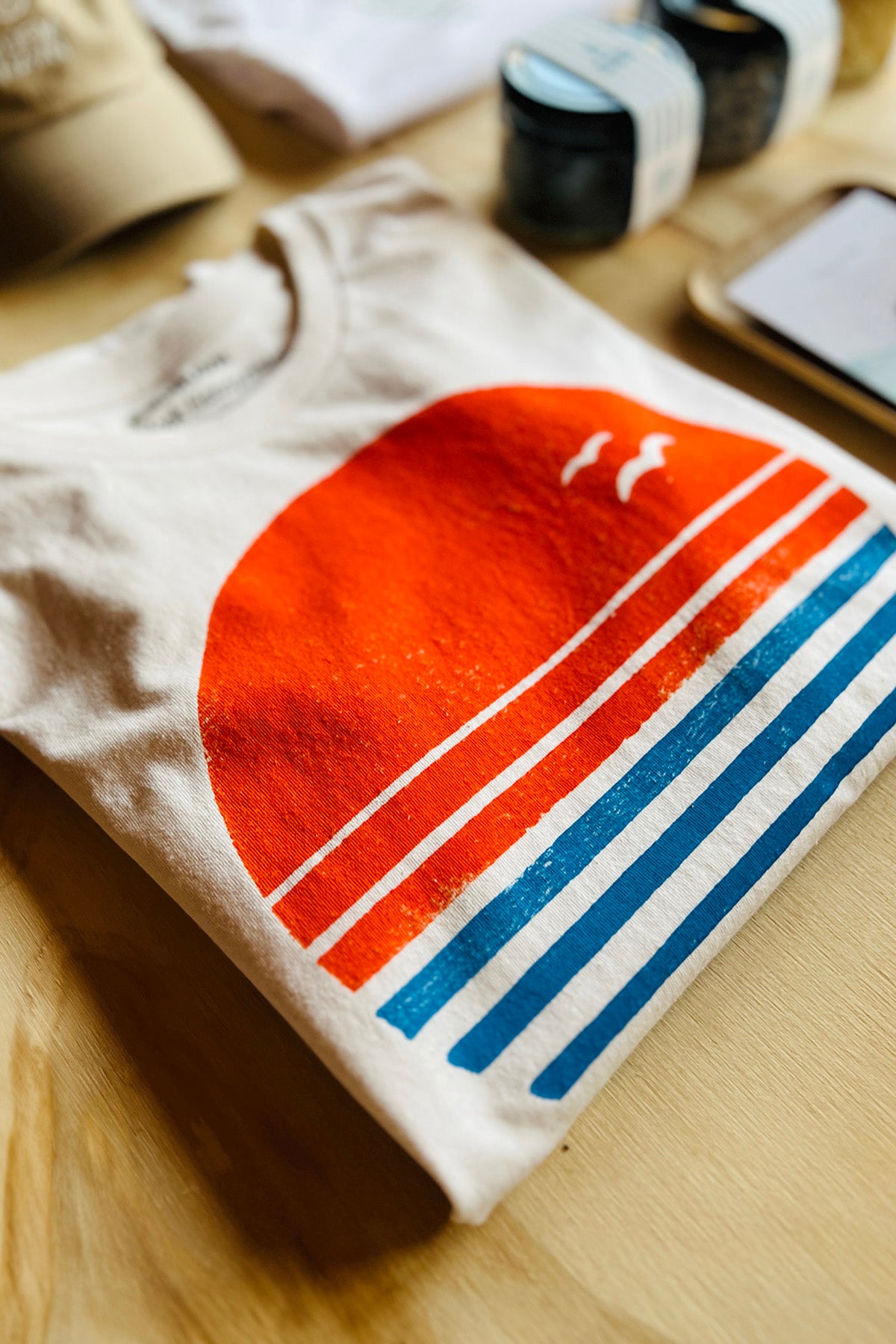 This shirt is hand-printed individually and to order. We print in the old-fashioned way with a large stamp that gives the print a unique stamp look.
