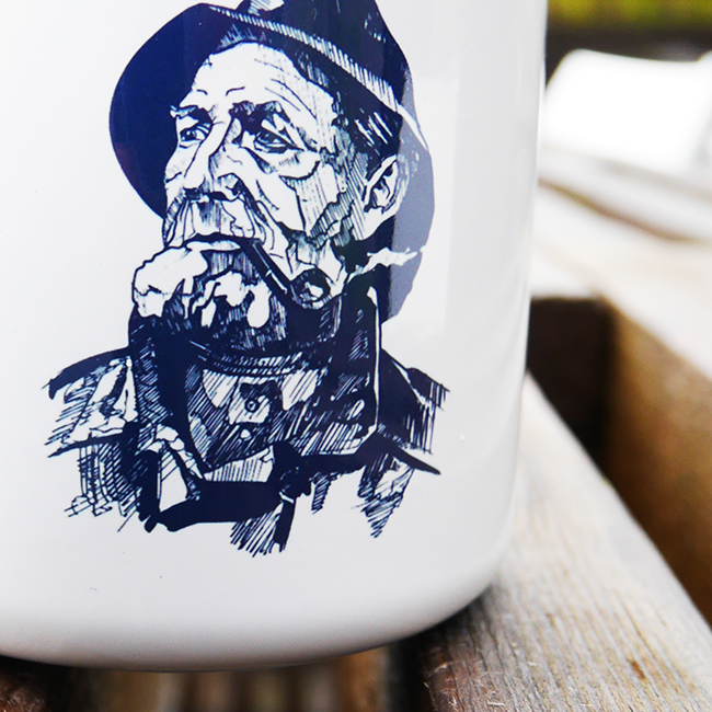 Krusene er belagt med en lys hvid emalje maling og afsluttet med en blå kant - og grundigt testet på øl, portvin og kulsort kaffe.