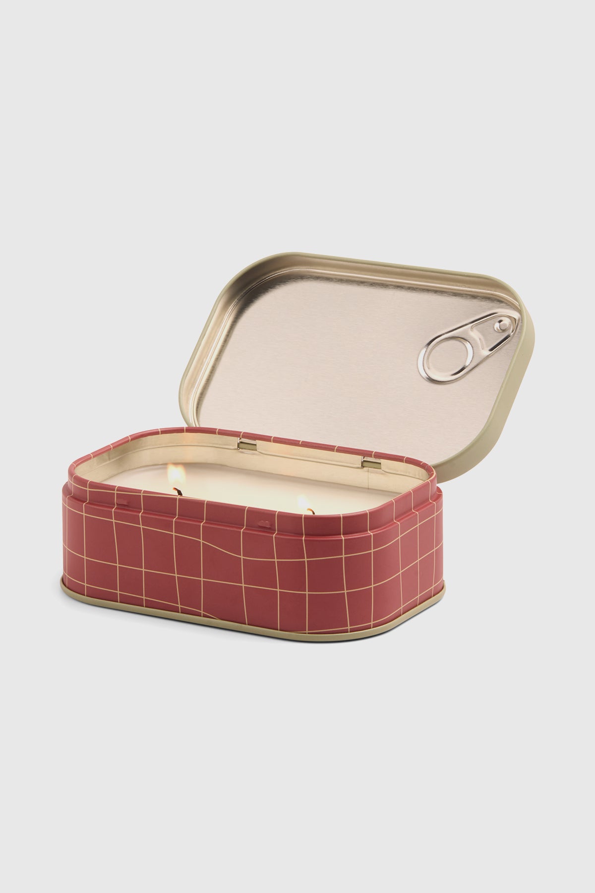 Duftlys inspireret af sardindåser og med håndillustrerede værker.